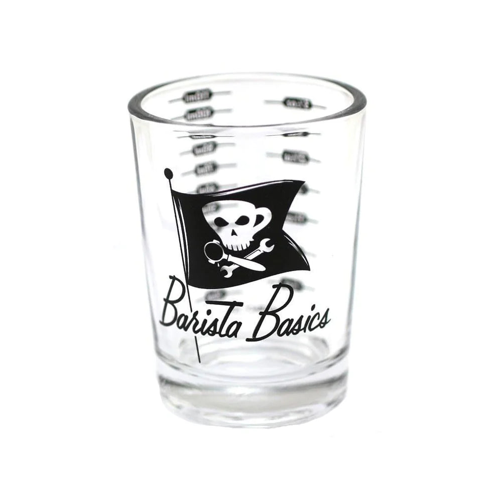 Excellent 4-ounce measuring glass brandishing the Barista Basics logo. This high-quality thick-walled clear glass features both ounce and milliliter measurement markings in a new scientific "beaker style" design. Measurements are 10ml -110ml in increments of 10ml, and 0.5oz to 3.5oz in 0.5oz increments. 3 1/8 in. tall. Ideal for professional drink building with applications in both espresso and cocktail drinks.